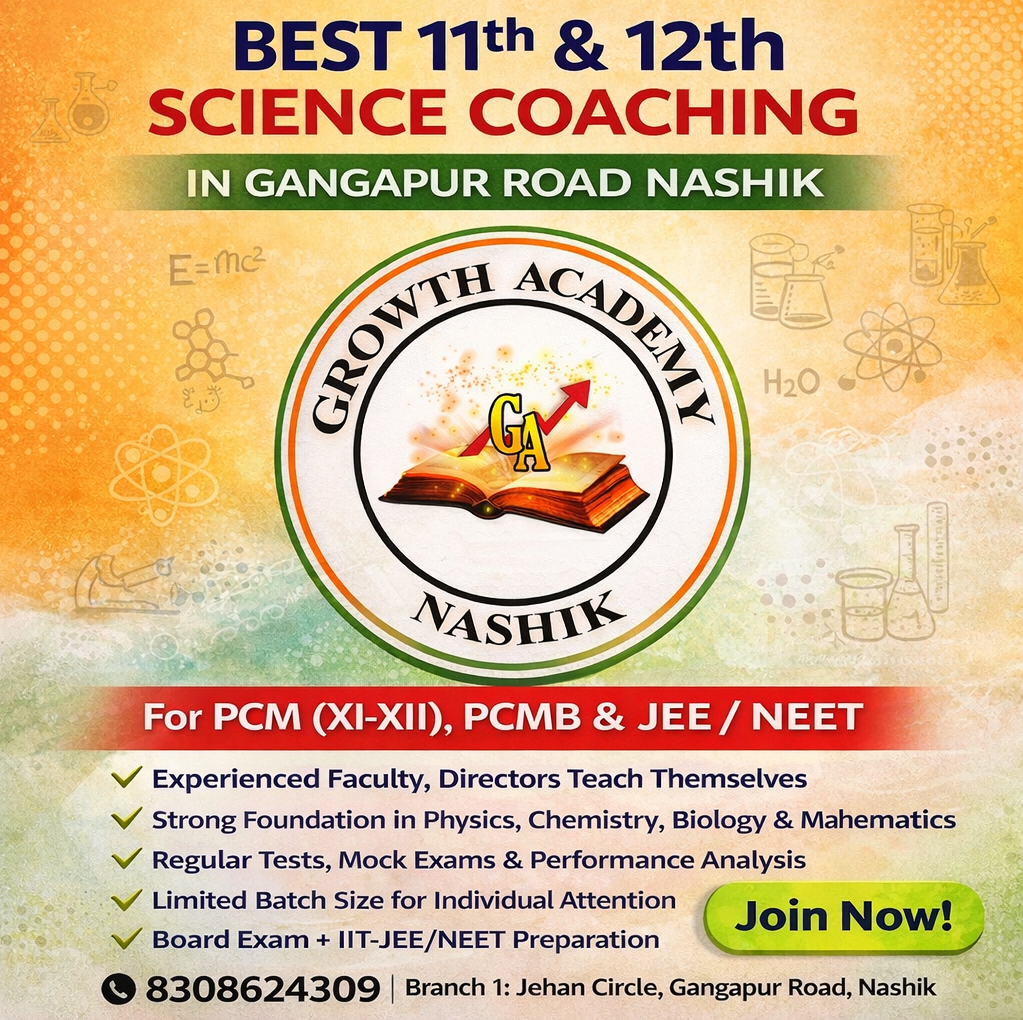 If you are searching for the best 11th & 12th science coaching in Gangapur Road Nashik, Growth Academy Nashik is the perfect place to build a strong foundation in Physics, Chemistry, Mathematics, and Biology. We focus on concept clarity, academic excellence, and preparation for competitive exams like JEE and NEET.
