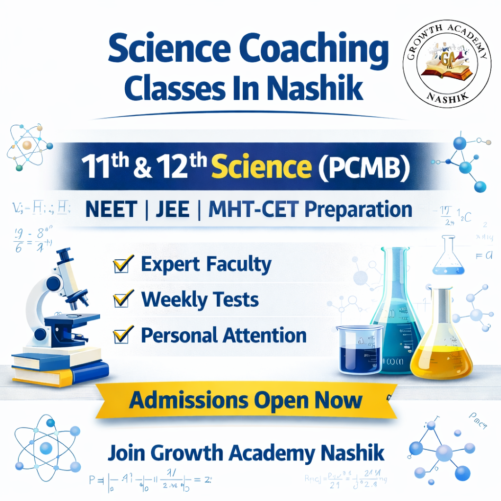 If you are searching for the best Science Coaching Classes in Nashik, Growth Academy Nashik provides expert coaching for students of 11th and 12th Science (PCMB) along with preparation for competitive exams like NEET, JEE, and MHT-CET. Our institute focuses on strong conceptual learning, exam-oriented preparation, and consistent performance improvement to help students achieve academic excellence.